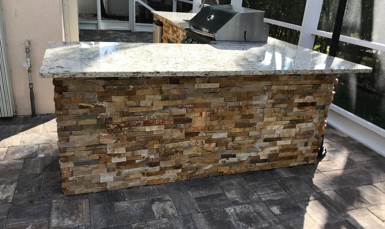 Stone and siding installations, including custom BBQ areas, built with durability, clean finishes, and attention to detail.